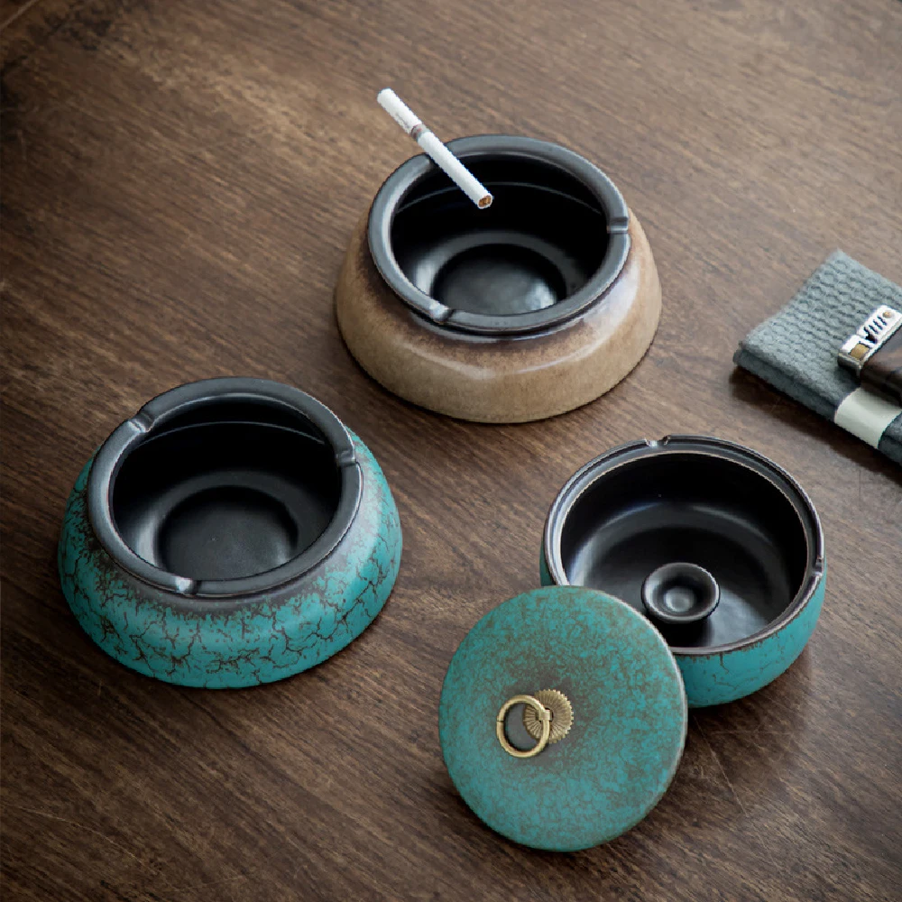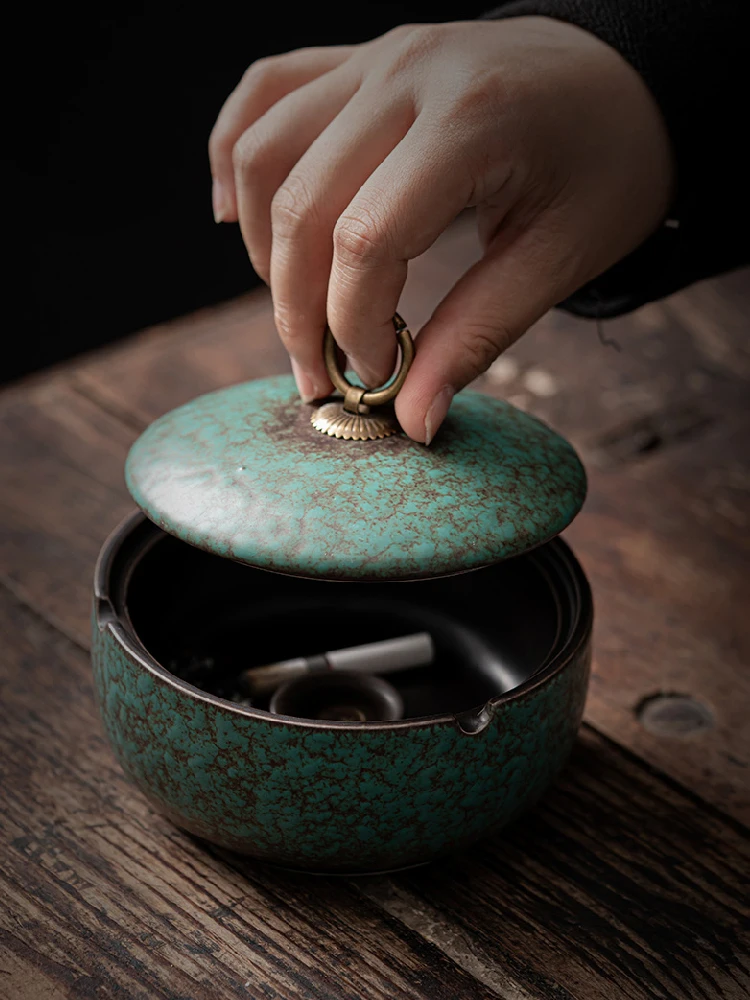 Creative covered ashtray, retro personalized ceramic ashtray, home living room office windproof extinguishing ashtray